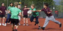 Возможно, корфбол - это единственный вид спорта созданный в школе и для школьников. Его придумал в 1902 году учитель физкультуры из Амстердама. | Оборудование для игры в корфбол достаточно простое и состоит из двух стоек с закрепленными на них корзинами и мяча. |